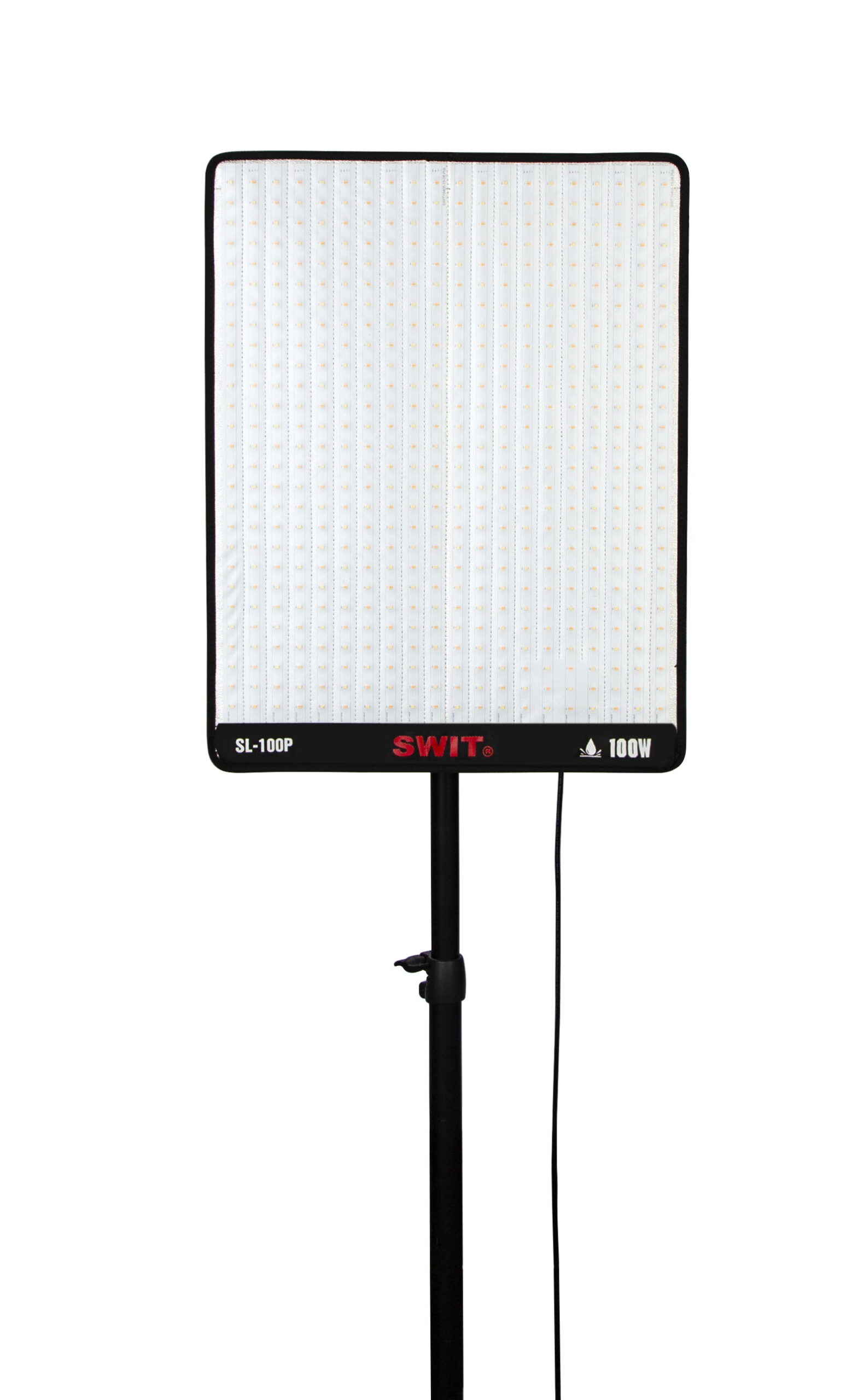 De nieuwe generatie SL-100P Bi-color Flexible LED Light beschikt over 100W vermogen en is IP54-gecertificeerd voor regenbestendigheid – zowel de lichtmat als de controller. In combinatie met SWIT IP54-regenbestendige V-mount batterijen (PB-R160S+ of PB-R290S+) kan deze lamp zonder extra bescherming in de regen worden gebruikt, onder elke hoek.